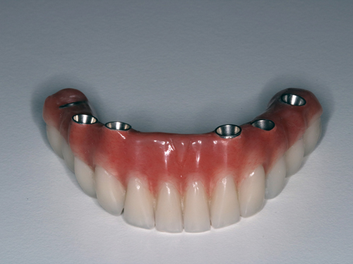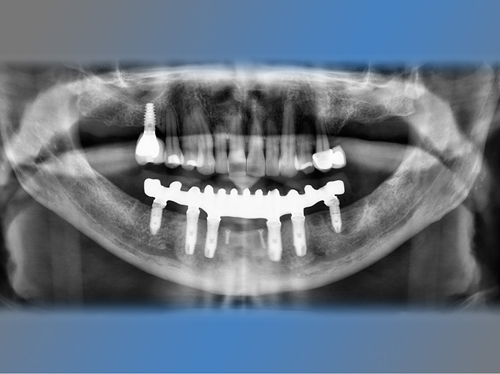 Se optó por colocar 5 nuevos implantes al mismo tiempo que se regeneraba su mandíbula con un injerto óseo. Se utilizaron 4 de estos implantes para ponerle una prótesis fija provisional al cabo de 24 horas (carga inmediata).